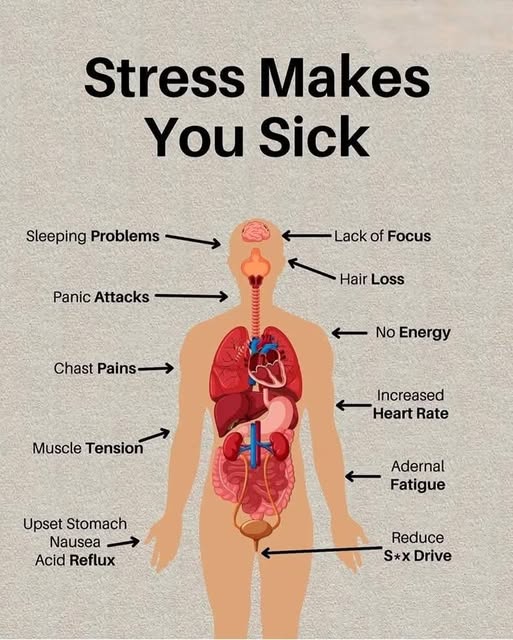 Stress triggers the release of cortisol and adrenaline, which are useful in short bursts—like in a fight-or-flight situation—but harmful when continuously elevated. Here are some common ways stress negatively affects the body: